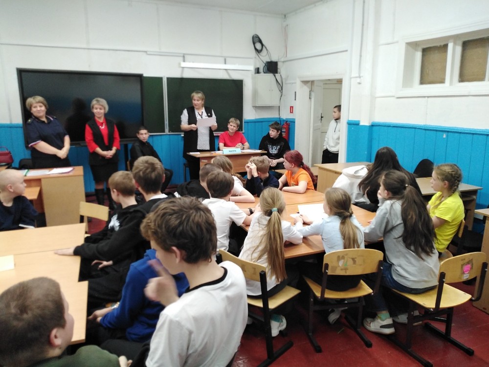 Для повышения интереса школьников к изучению основ права ответственным секретарем КДН И ЗП при администрации Пудожского муниципального района С. С. Копотиной и старшим инспектором ПДН ОМВД России по Пудожскому району Е. П. Толошиновой была организована увлекательная правовая викторина среди двух команд старшеклассников школы д.Каршево.