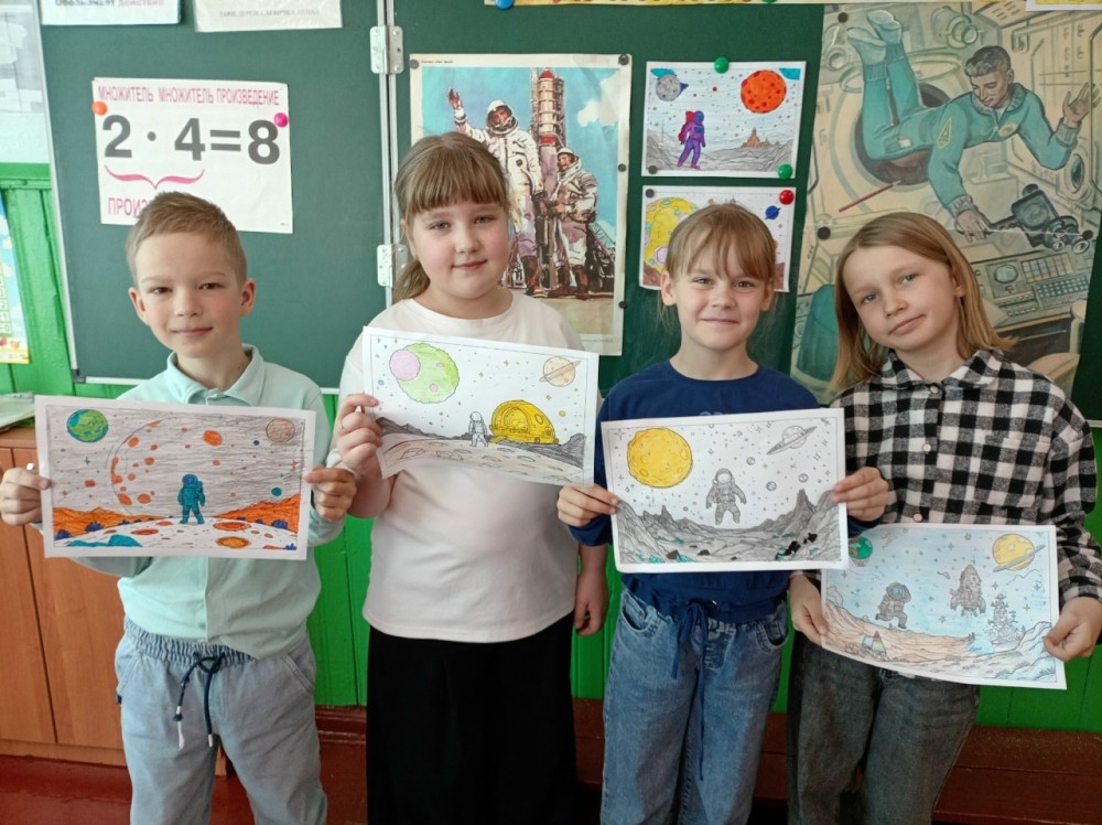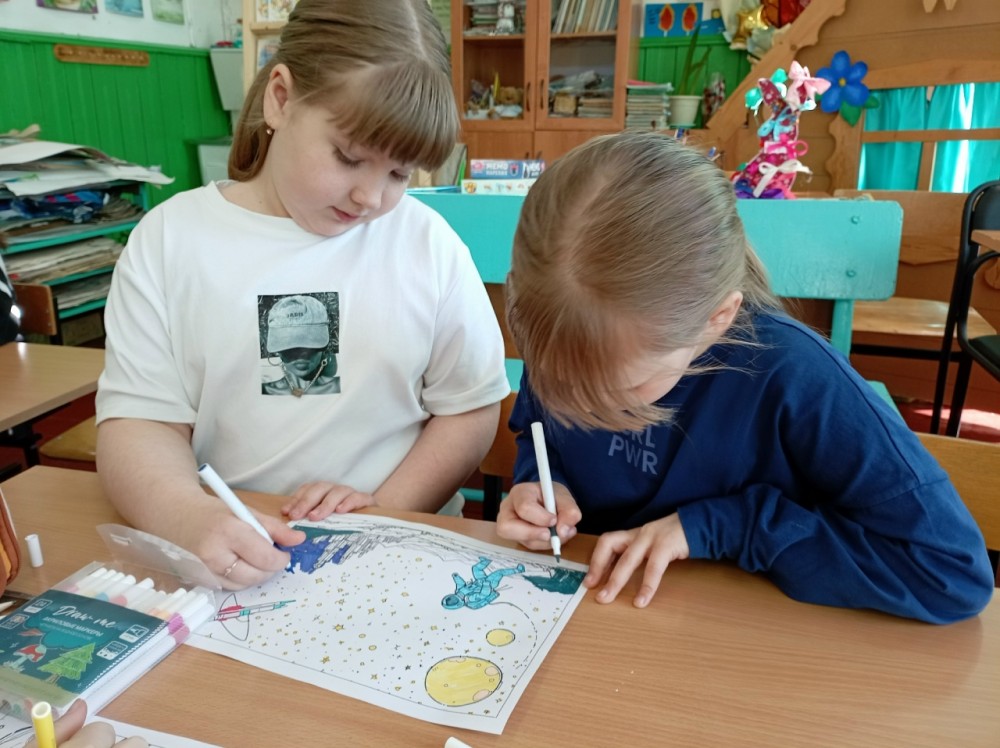 В ходе мероприятия учащиеся рисовали космические пейзажи и участвовали в викторине.